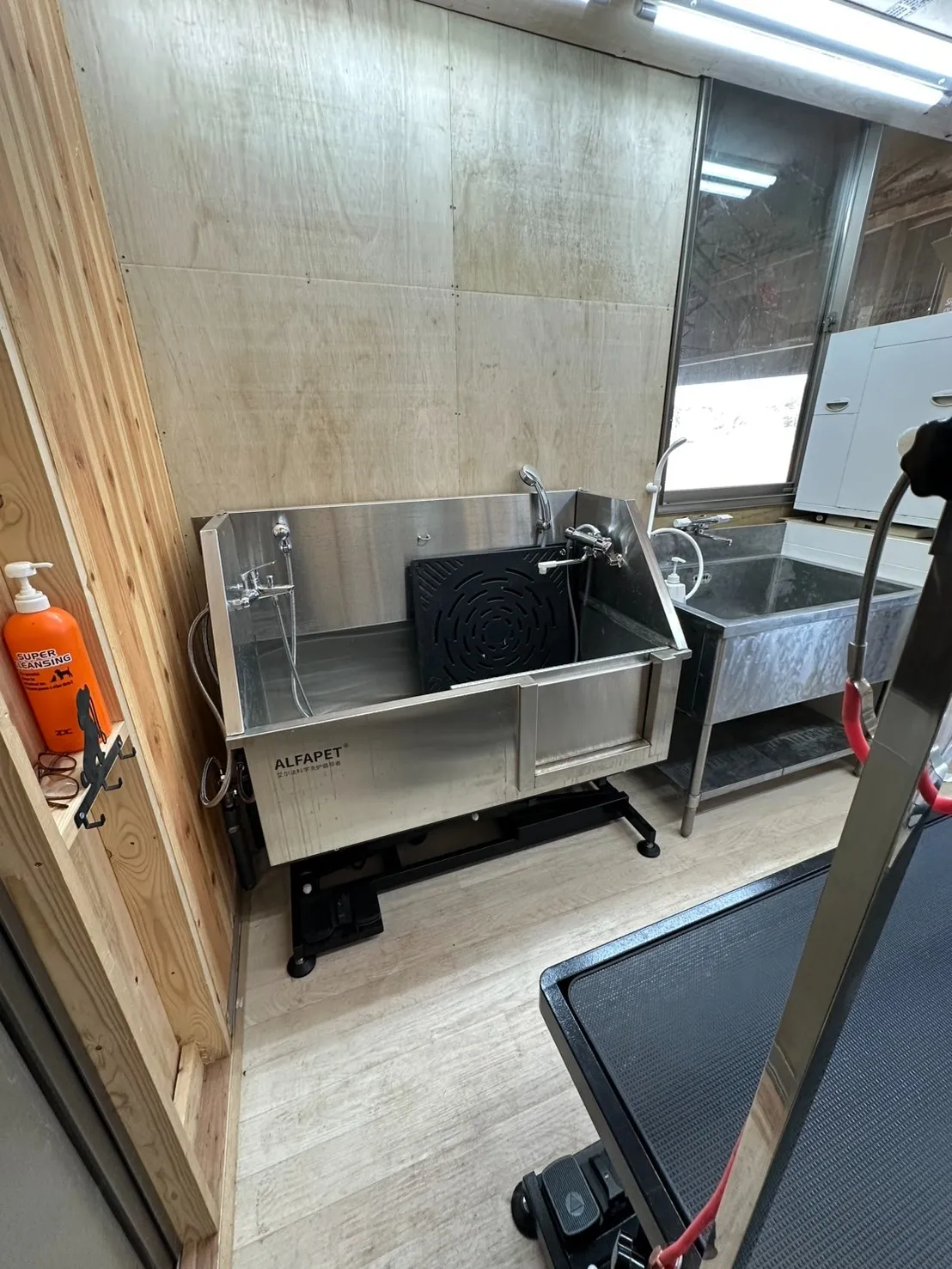 シャンプー台・ドライヤー・作業台など、基本的な設備をご用意しておりますので、わんちゃんのシャンプーやブラッシングなどの日常ケアにご利用いただけます。